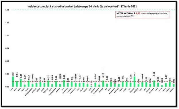 Până astăzi, 17 iunie, pe teritoriul României, au fost confirmate 1.080.070 de cazuri de persoane infectate cu noul coronavirus (COVID – 19).