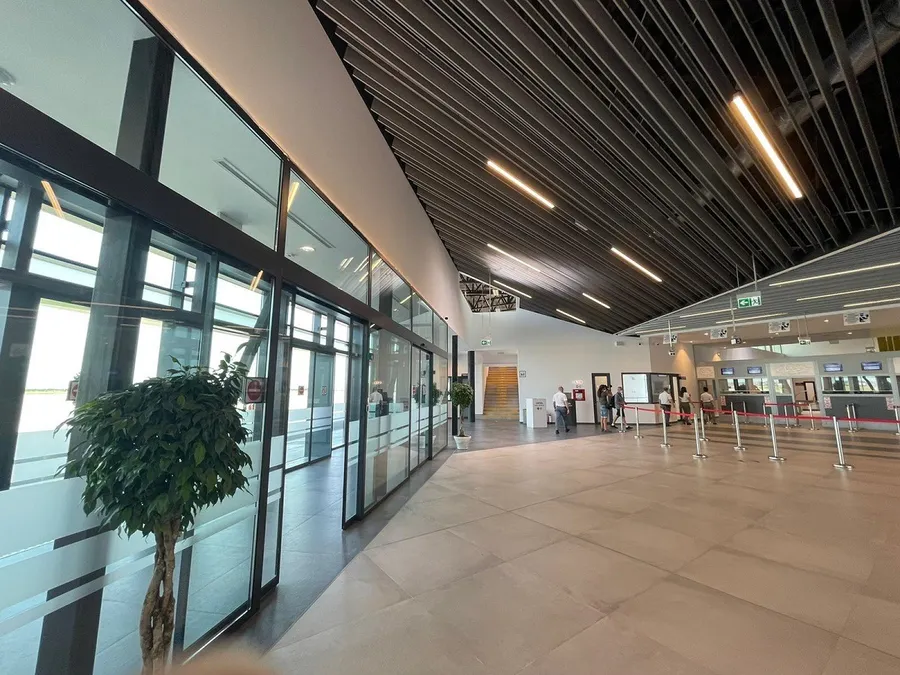 Construcţia are o suprafaţă de 4.383 mp, are 10 filtre de control la intrarea în ţară ale Poliţiei de Frontieră şi un sistem optimizat de control vamal. Poate deservi până la 540 de pasageri simultan, adică să asigure formalităţile pentru 3 avioane deodată.