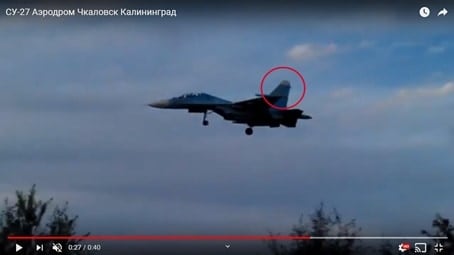 Captură după o înregistrare a unui localnic din Kaliningrad cu decolarea avionului Su-27 a Regimentului 27 din Chkalovsk, acum parte a Regimentului 689 aviație de vânătoare (Sursa: YouTube)