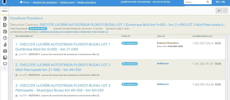 Ministerul Transporturilor a emis, joi, Autorizația de Construire pentru primul lot al Autostrăzii Ploiești – Buzău, prima secțiune a Autostrăzii A7 Ploiești – Pașcani, cel mai mare proiect de infrastructură rutieră din Europa finanțat prin PNRR. Pentru lotul Dumbrava – Mizil, cu o lungime de 21 kilometri, se înregistrează cea mai mare întârziere dintre cele trei loturi, desemnarea câștigătorului asocierea româno-italiană BOG-ART – TANCRAD – COSEDIL fiind amânată de mai multe ori, după cum Economedia a scris, aici, ultimul termen fiind pentru stabilit pentru astăzi, 16 aprilie. Autostrada Ploiești – Buzău cu o lungime de 63 kilometri cuprinde trei loturi, însă niciunul nu are contract de execuție semnat.