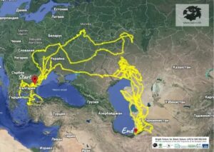 Timp de doi ani de la venirea sa în Bulgaria, Djuranlyi a zburat prin multe țări: Grecia, Turcia, România, Moldova, Ucraina, Belarus, Rusia, Turkmenistan, Kazahstan, Uzbekistan, Iran. Ornitologii din aceste țări s-au implicat activ în urmărirea păsării pe măsură ce aceasta trecea prin teritoriile lor și s-au bucurat de vizita oaspetelui atât de rar.