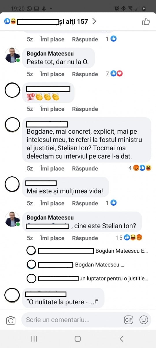 O persoană l-a întrebat pe Mateescu într-un comentariu dacă este vorba de fostul ministru al Justiției, Stelian Ion.