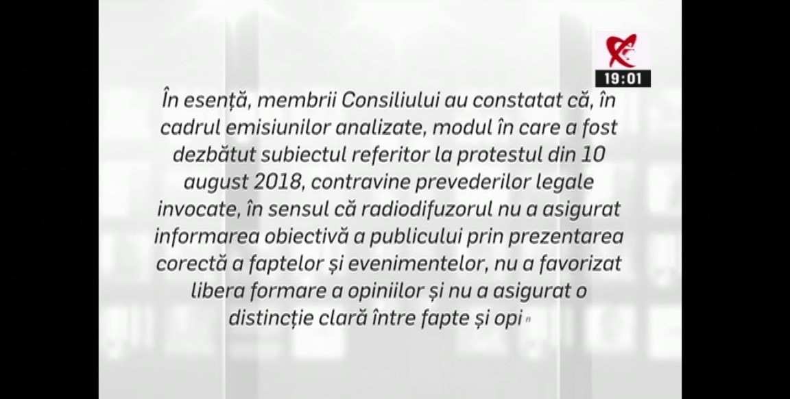 CNA a suspendat emisia Realității TV din cauza modului în care postul TV a reflectat violențele autorităților la mitingul diasporei din 10 august 2018.