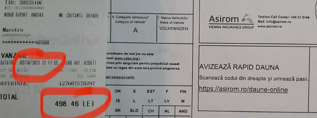 Azi 8.1.2021 am achitat 643 lei cu acelasi B8
