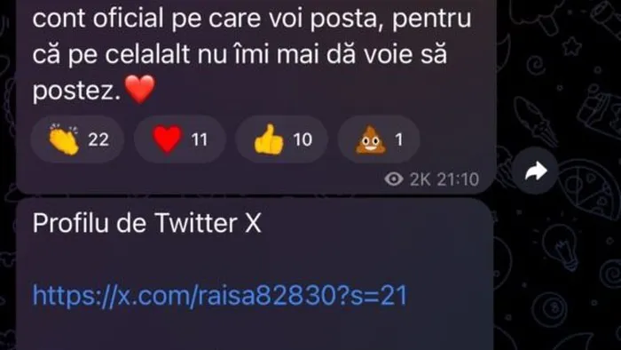 Toată activitatea de propagandă a ”Raisei” s-a mutat pe Facebook, X și un grup de Telegram unde reporterii sunt membri. Discuțiile de pe contul de Telegram au loc în aceeași retorică și stil ca pe cele ale contului de susținere pentru Călin Georgescu.