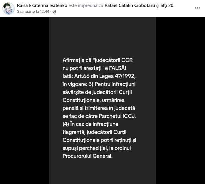În fapt, prima postare făcută de ”Raisa” a fost în 26 decembrie și era una laudativă la adresa Cristelei Georgescu, soția candidatului pro-rus cu discurs legionar la alegerile prezidențiale din 24 noiembrie. Au urmat alte postări de susținere pentru Călin Georgescu, iar pe Facebook, Raisa și-a schimbat fotografia de copertă cu una a lui Georgescu.