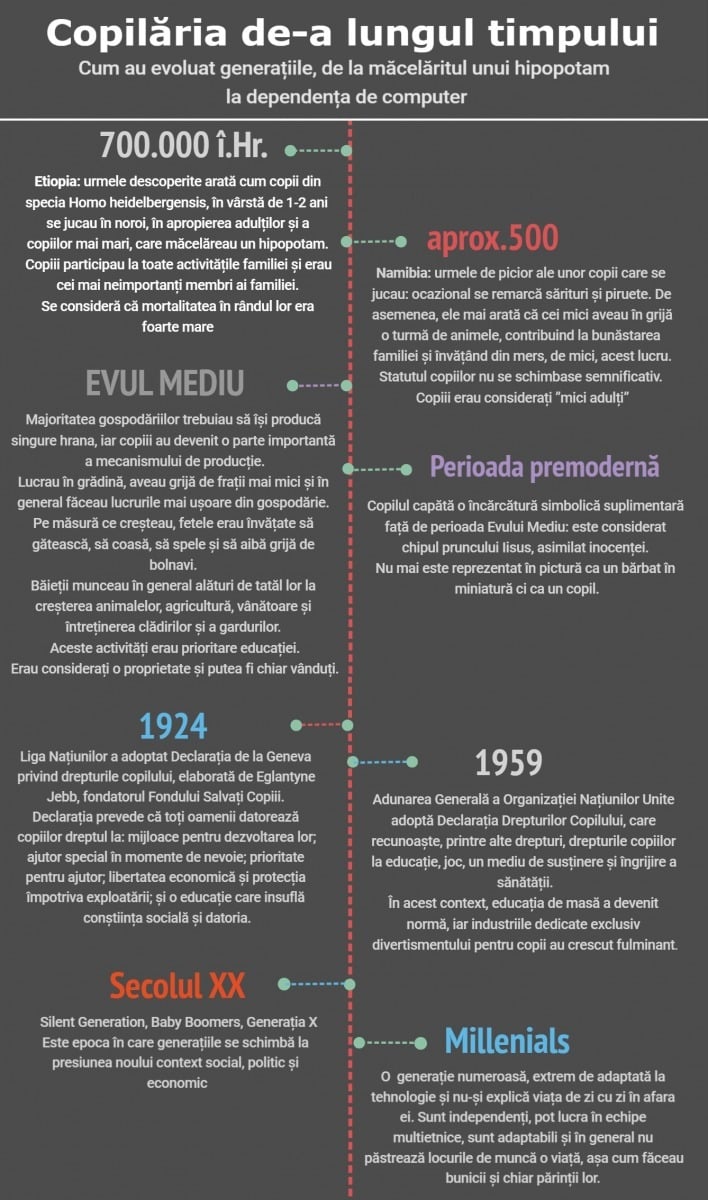 În Antichitate, nimeni nu se gândea să ofere o protecție specială copiilor, iar în Evul Mediu, erau considerați „mici adulți”. În perioada medievală, copiii au învățat să contribuie la bunăstarea familiei la o vârstă fragedă.