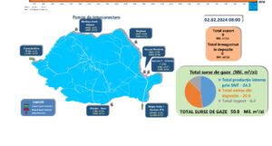 Importul de gaze al României crește treptat, marcând un 50% în plus față de luna trecută, dar consumul rămâne relativ constat. Astfel, azi vin din afară 6,5 milioane metri cubi de gaze (circa 4,2 milioane metri cubi se importau până săptămâna trecută), cel mai mult din spre Bulgaria – 4,6 milioane de metri cubi, restul din Ungaria. Consumul total este de circa 50 de milioane de metri cubi, adică în media ultimelor zile, extracția din depozite a mai scăzut, spre 20 de milioane de metri cubi. Producția locală rămâne la 24,4 milioane metri cubi, nu avem exporturi.