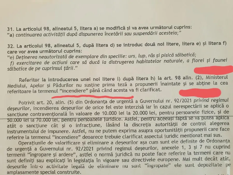 „Arderi ilegale de deșeuri acum, lângă București, în Bolintin Vale. În același timp ministrul Tanczos Bârnă spune oficial că nu înțelege termenul de incendiere a deșeurilor în demersul Parlamentului de transformare a contravenției de incendiere a deșeurilor în infracțiune”, a transmis Berceanu pe contul său de facebook, postând și un document din care reiese că pentru termenul „incendiere” sunt cerute clarificări (vezi imaginea mai jos).