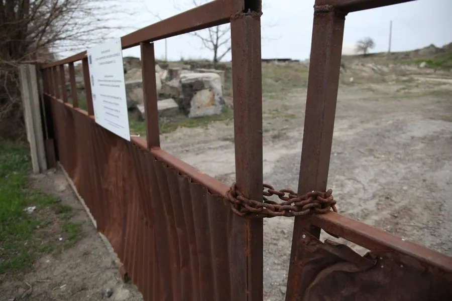 ”Punctul de lucru” unde aceste firme ar trebui să își țină utilajele este, în realitate, un teren viran de la marginea Măcinului, cu lacătul ruginit pus pe o poartă de metal, fără paznic și nici urmă de vreun utilaj.