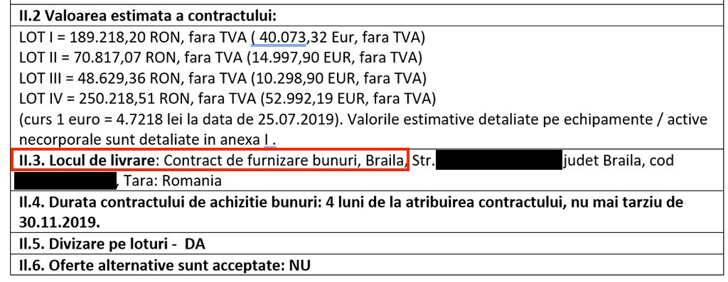 Apoi, într-un bloc de pe Strada Isaccei, într-un apartament la parter își are punctul de lucru o firmă de arhitectură din Brăila care a cumpărat, cu aproximativ 150.000 de euro, o stație de randare, două stații grafice desktop, o imprimantă laser color, un aparat foto, o dronă și alte echipamente IT. Bunurile au ajuns direct în Brăila, fără nici măcar o haltă prin Tulcea, conform anunțului de achiziție în care, la locul de livrare, era trecută adresa sediului social al firmei și nu cea a punctului de lucru.