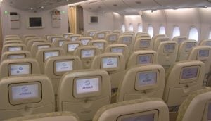 - cel mai mare avion de pasageri din lume, având două niveluri sau punți unde încap 550 de pasageri (unele avioane Emirates au fost modificate pentru a putea primi 600 de pasageri)