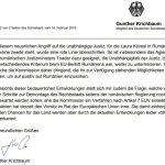 Gunther Krichbaum arată în scrisoarea consultată de G4Media.ro că prin acest dosar a fost încălcată ”o linie roșie”: ”inițierea anchetei judiciare este foarte clar motivată politic, pentru a torpila candidatura foarte promițătoare a Laurei Kövesi pentru funcția de procuror șef al Parchetului European. Aceasta manevră îmi amintește de timpurile întunecate al dictaturii comuniste, pe care credeam că România le-a depășit de mult”.