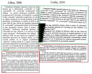 ”«Victima» numărul 1 a lui Corbu la capitolul furt intelectual este Ana Cristina Lăbuș, un alt magistrat – culmea, prietenă a judecătoarei Corbu și colegă a acesteia în Consiliul Superior al Magistraturii la momentul susținerii tezei. Cu doi înainte de momentul la care Corbu a devenit doctor în Drept, Lăbuș publicase un articol în Revista «Drepturile Omului» – «Cererea individuală în sistemul Convenției europene a drepturilor omului. Titulari, calitatea de victimă, condiții de admisibilitate», nr. 2/2008, p. 14-23. Paginile 25-62 ale cărții lui Corbu s-au inspirat copios și neetic din acest articol: au fost preluate fragmente integral, deseori cu tot cu note de subsol, iar altele au fost reformulate, mai mult sau mai puțin. Nicăieri în teză, inclusiv în bibliografie, nu este citat articolul lui Lăbuș”, scria CRJI în august 2019.