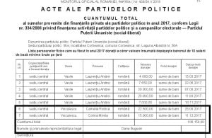În documentele trimise de această formațiune, anual, Autorității Electorale Permanente, Dana Bugean figurează ca reprezentant legal al partidului și donator al mai multor sume către această formațiune.