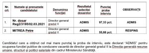 Pentru acest post au fost admiși la interviu doi candidați. Carmen Șotîngă nu a dorit să îi fie făcut public numele, astfel că în anunțul Ministerului Sănătății privind obținerea postului, aceasta apare doar cu numărul dosarului.