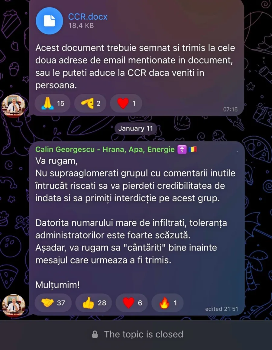 Susținătorii candidatului pro-rus la alegerile prezidențiale 2024 Călin Georgescu își reorganizează rețeaua de comunicare pe Telegram, conform unor mesaje recente transmise pe grupurile tematice. Din informațiile analizate de G4Media.ro, reiese că administratorii acestor grupuri încearcă să stabilească o structură mai clară și să atragă voluntari pentru activități specifice, inclusiv editare video și distribuție de conținut concentrat, în pregătirea alegerilor prezidențiale din mai 2025.