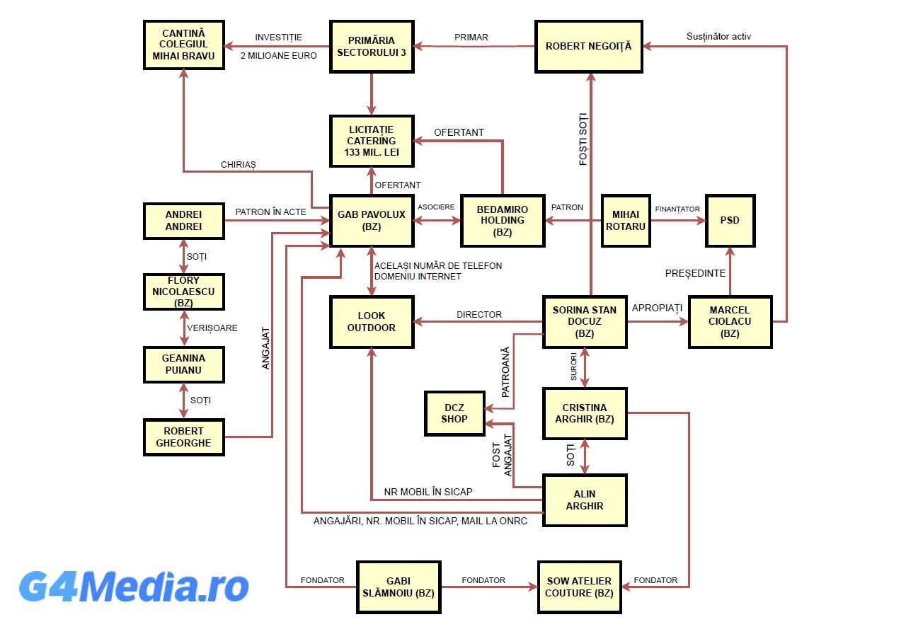 Legăturile dintre cei de mai sus nu se opresc aici: Alin Arghir a fost angajat la firma DCZ Shop deținută de cumnata sa Sorina, iar, în 2022, figura cu venituri de la Primăria Sectorului 3, unde edil este fostul său cumnat Robert, precum și de la Algorithm Construcții S3 SRL, societate subordonată aceleiași primării.