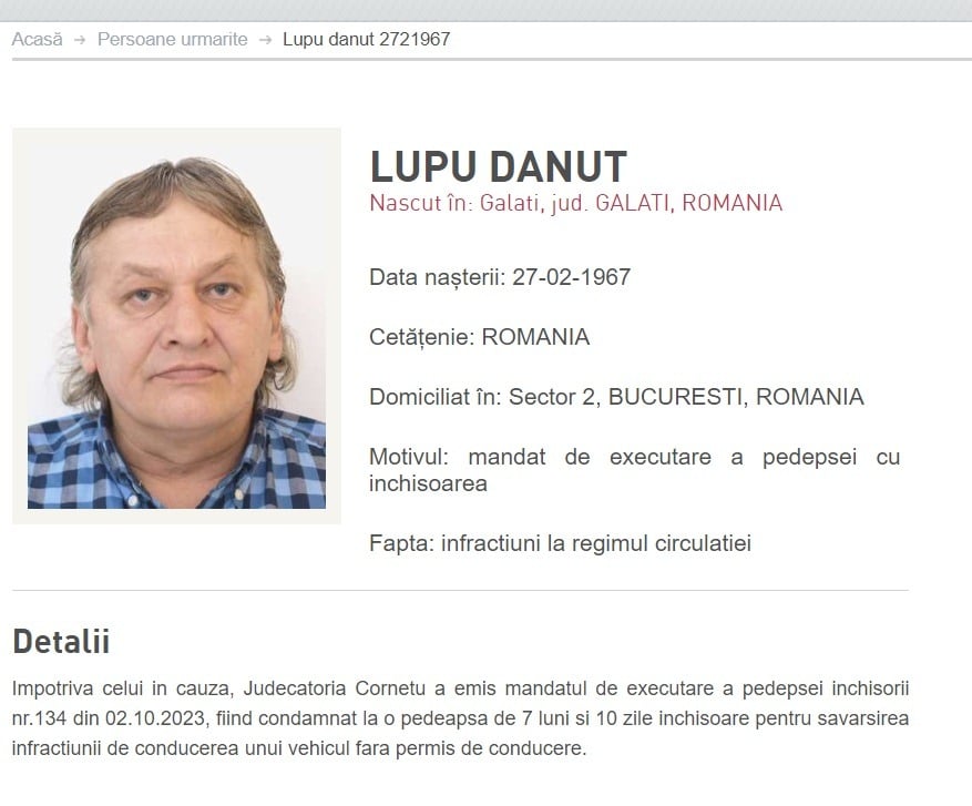 Update Ora 13.45: Dănuț Lupu a fost dat în urmărire națională.