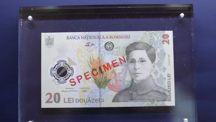 Guvernatorul Băncii Naționale Mugur Isărescu a prezentat vineri bancnota de 20 de lei care o ilustrează pe Ecaterina Teodoroiu. Această primă bancnotă românească pe care este ilustrat chipul unei femei va fi lansată în data de 1 decembrie 2021.