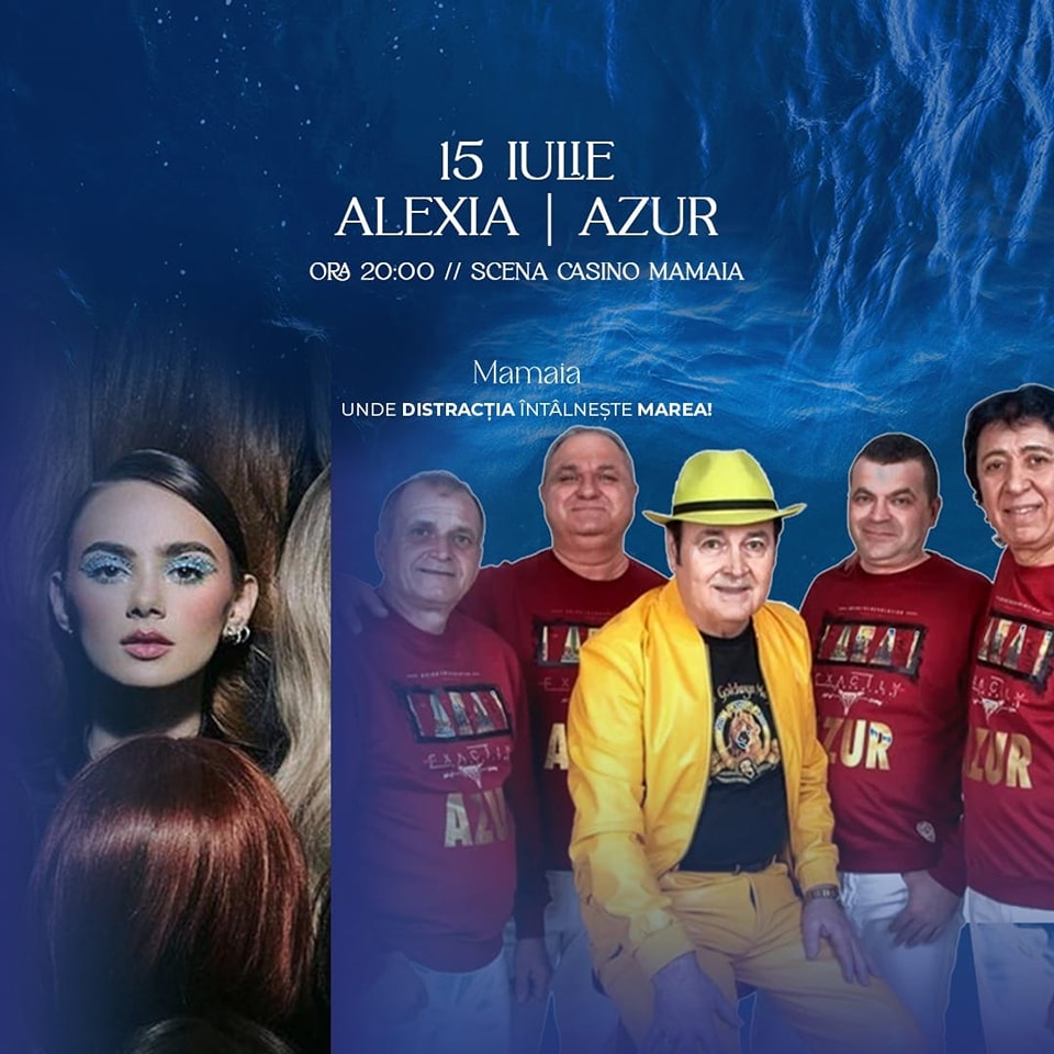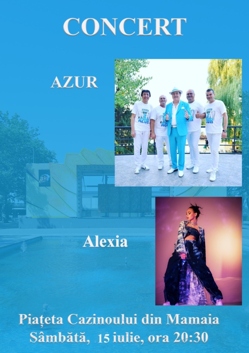 Afișul anunță că sâmbătă seară vor concerta în Mamaia Alexia și Trupa Azur, înființată în 1977 la Brăila și cu prima înregistrare audio care datează din 1985.
