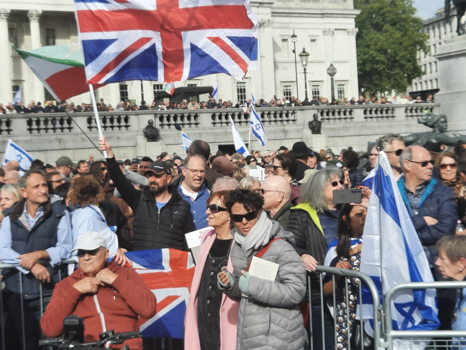 Persoanele strânse în capitala Marii Britanii au cerut eliberarea ostaticilor din Gaza, 48 în acest moment, dintre care 20 în viață. De altfel, în Trafalgar Square au vorbit şi două rude ale unor ostatici ucişi.