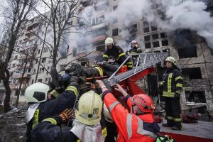 La șase zile după ce o rachetă rusească le-a distrus casele, locuitorii unei clădiri de apartamente cu nouă etaje din cartierul Obolon din nordul Kievului s-au întors la locul tragediei. Este o vizită scurtă, deoarece clădirea se prăbușește și este periculos să stai mult timp, relatează Kiev Independent.