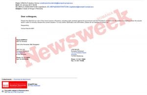 Viorica Dăncilă s-a semnat ”bucătar-șef” la sfârșitul scrisorii în care susținea OUG 13 și pe care a trimis-o colegilor europarlamentari. Captura foto a fost publicată de Newsweek, în materialul prin care jurnaliștii arătau că fostul premier a susținut punctul de vedere al lui Liviu Dragnea și ordonanța care a scos în stradă sute de mii de români pe vremea când aceasta era europarlamentar.
