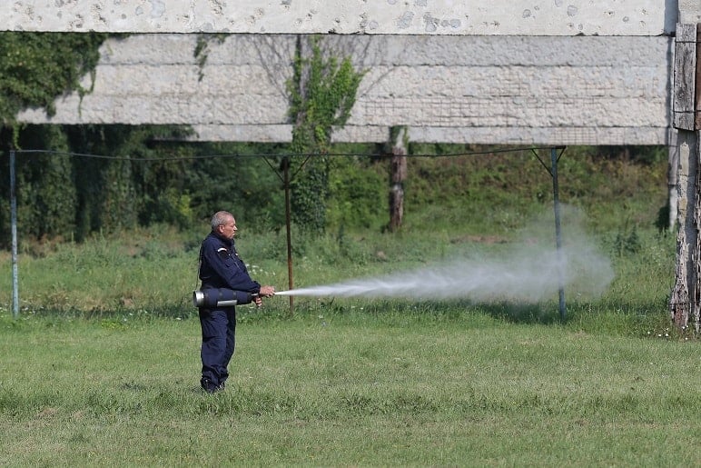 2. Tub de 7L cu jet aplicat de la 1m către o persoană căzută pe jos, timp de 10secunde.