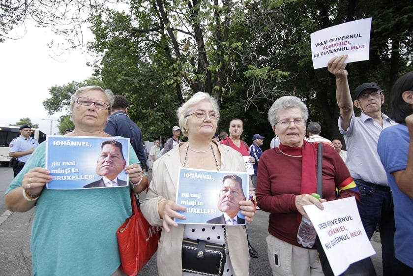 Circa 70 de bucureșteni au participat joi după-amiază la un protest împotriva președintelui Klaus Iohannis, desfășurat în fața Palatului Cotroceni. Manifestanții au strigat sloganuri pro-PSD și anti-prezidențiale, au purtat pancarte cu mesajul ”Vrem guvernul României, nu guvernul meu”. La ora mitingului, președintele Iohannis se afla la Bruxelles, la Consiliul European de vară.