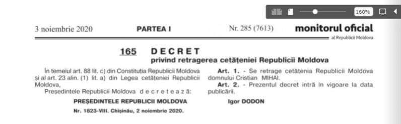 Si eu care credeam ca este protejat de rusi !!! Cand colo, ce sa vezi, „omul rusilor” ii retrage prin decret, nu prin hotarare judecatoreasca cuma r fi normal intr-o democratie, cetatenia moldoveneasca !!! Mirosul banilor este mai puternic decat democratia !