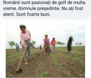 Mesajul subliminal al președintelui către români : sunteti prosti de dați în gropi. De aia cred v-ați pricepe la golf.
