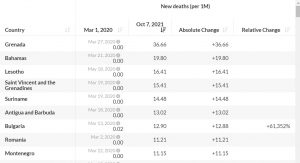 În fața celor două, au înregistrat mai multe decese la un milion de locuitori doar câteva țări cu populații foarte mici – Grenada, Bahamas, Lesotho, Surinam.