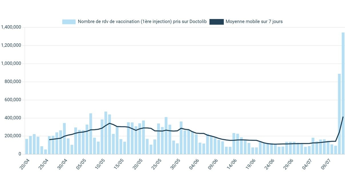 Valul de programări a început imediat după ce preşedintele Emmanuel Macron a avertizat, într-un discurs susținut luni, că ar putea fi introduse restricţii pentru cei care nu au un certificat de sănătate care să dovedească vaccinarea sau efectuarea unui test negativ pentru COVID.