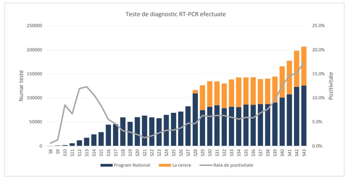 Peste o treime din cazurile de COVID-19 s-au înregistrat în ultima săptămână în București, Cluj, Timiș, Iași și Bihor, iar 28% din decese au fost raportate în Sibiu, București, Prahova, Alba și Arad, potrivit analizei săptămânale a Institutului Național de Sănătate Publică (INSP), publicată miercuri.