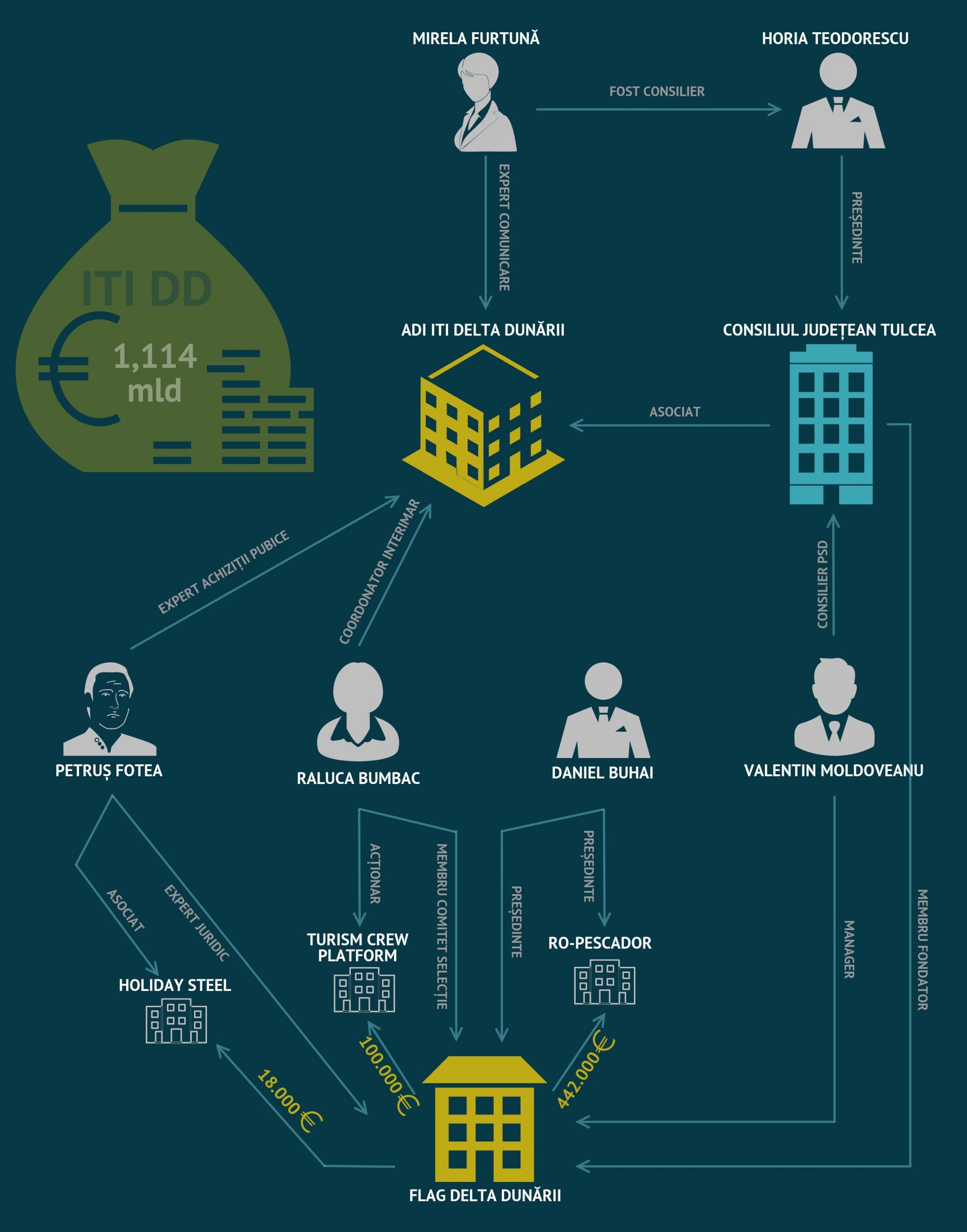 Un miliard de euro a fost împărțit de o mână de oameni conectați prin relații personale, afaceri sau interese politice. Banii au fost trimiși de Bruxelles prin mecanismul Investiției Teritoriale Integrate Delta Dunării (ITI DD), cu cel mai mare buget dintre toate ITI-urile Europei.