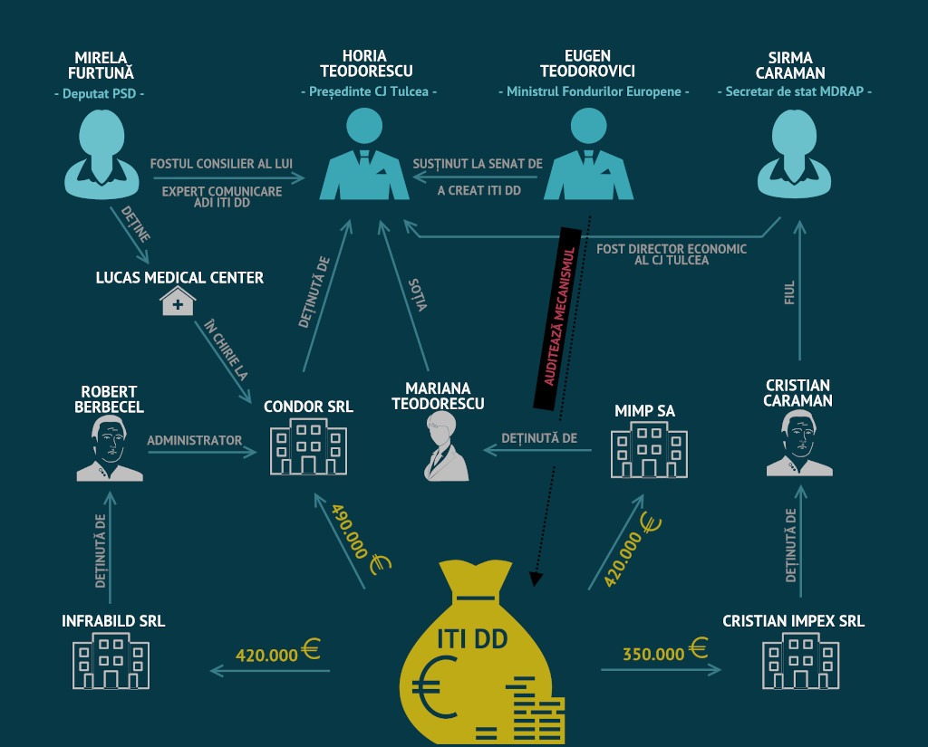 Dar Horia Teodorescu nu este singur în coordonarea banilor ITI DD. În jurul său a fost țesută o întreagă rețea de persoane influente, unii dintre ei având roluri-cheie în gestionarea banilor veniți de la Bruxelles.