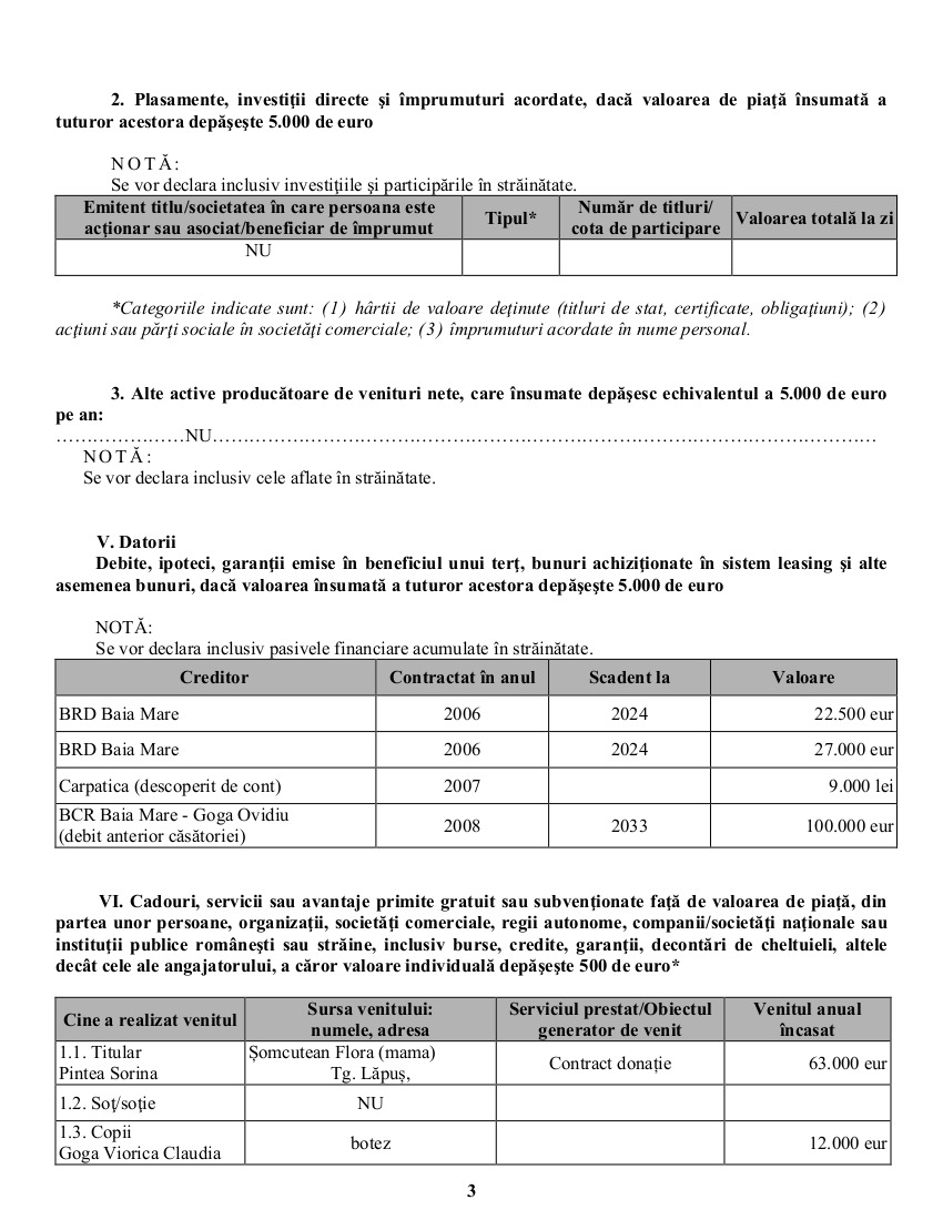 Mama sorinei pintea o fi dat si ea niste consultatii si apoi nu a avut ce sa faca cu banii!!! Speram ca nu e treaba cu mita dusa la mama-sa acasa si apoi donatia ma-sii a shpagii catre fiica-sa cu acte regulamentar.