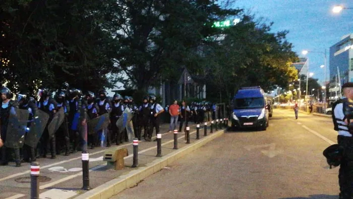 20:30 – Scutierii au fost desfășurați în proximitatea Pieței Victoriei, pe bulevardul Iancu de Hunedoara