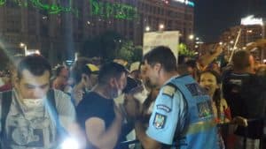 21:20 – Momente tensionate după ce un grup de instigatori au vrut să forțeze gardurile instalate de jandarmi. Unul dintre protestatarii violenți a fost extras de forțele de ordine din mulțime și dus la dubă. Jandarmii au folosit gaze lacrimogene pentru a calma spiritele.