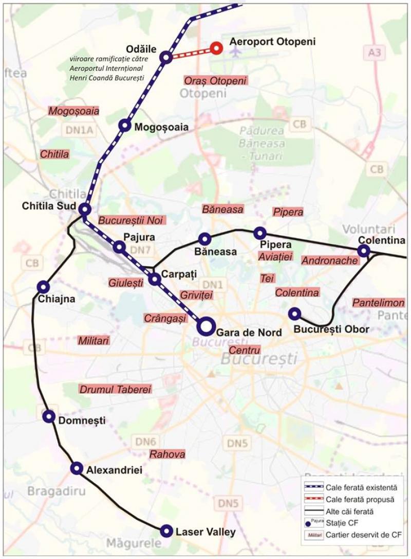 Ideea legării căii ferate cu aeroportul Otopeni a fost resuscitată în 2016 şi apoi reabandonată în favoarea construirii liniei de metrou. Cele mai optimiste estimări arătau că aceasta ar fi fost finalizată abia ăn 2023 şi ar fi costat de cel putin 13 ori mai mult decât reabilitarea şi extinderea căii ferate.