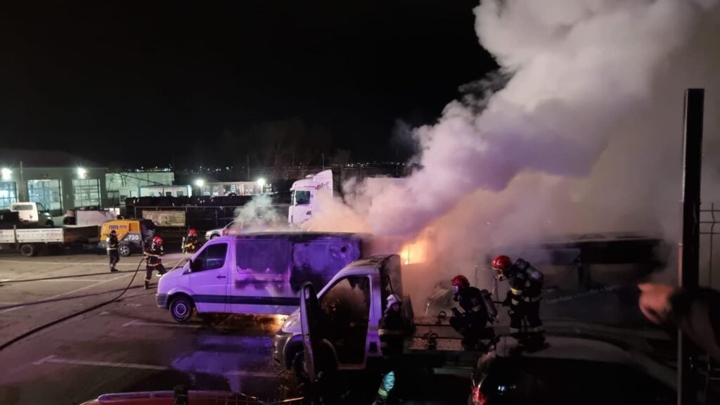”ISU Sibiu intervine de urgenţă pe strada Ştefan cel Mare la ieşirea din municipiul Sibiu, pentru stingerea unui incendiu izbucnit la mai multe autovehicule în curtea unui operator economic. La faţa locului sunt mobilizate două autospeciale de stingere, o autocisternă, o autospecială de primă intervenţie şi un echipaj SMURD”, a transmis, duminică seară, ISU Sibiu.
