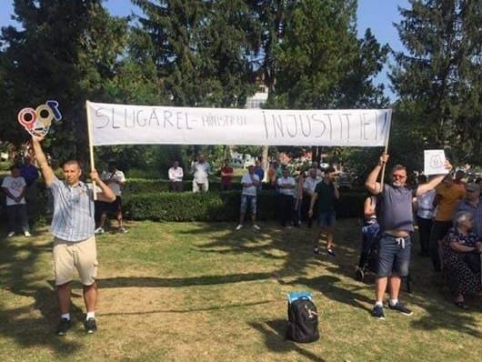 Tudorel Toader a participat, joi, la ceremonia de depunere a jurământului a unei noi promoții a Școlii Naționale de Pregătire a Agenților de Penitenciare de la Targu Ocna. Ministrul Justiției a fost întâmpinat de mai mulți protestatari cu o pancarta pe care scria “Slugarel – ministrul Injustiției”
