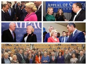 Siegfried Mureșan a publicat și un colaj foto în care Dăncilă apare alături de alți demnitari în cadre și întâlniri neoficiale, unde nu se construiesc discuții și angajamente politice: