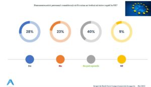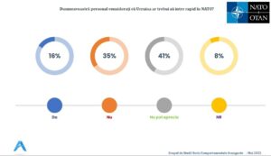 La întrebarea ”Dumneavoastră personal considerați că Ucraina ar trebui să intre rapid în NATO?”, 16% cred că nu, 35% da iar 41% declară că nu pot aprecia. La întrebarea ”Dumneavoastră personal considerați că Ucraina ar trebui să intre rapid în UE?”, 28% răspund cu da, 23% nu iar 40% nu pot aprecia.