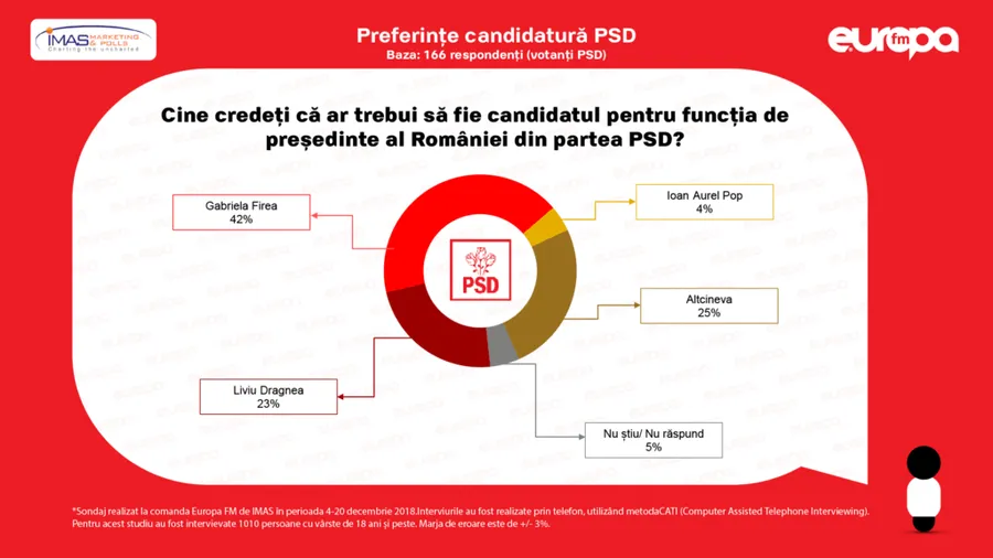 Sondajul a fost realizat la comanda Europa FM de IMAS în perioada 4-20 decembrie 2018. Interviurile au fost realizate prin telefon,utilizând metoda CATI (Computer Assisted Telephone Interviewing). Pentru acest studiu au fost intervievate 1010 persoane cu vârste de 18 ani și peste. Marja de eroare este de +/- 3%.