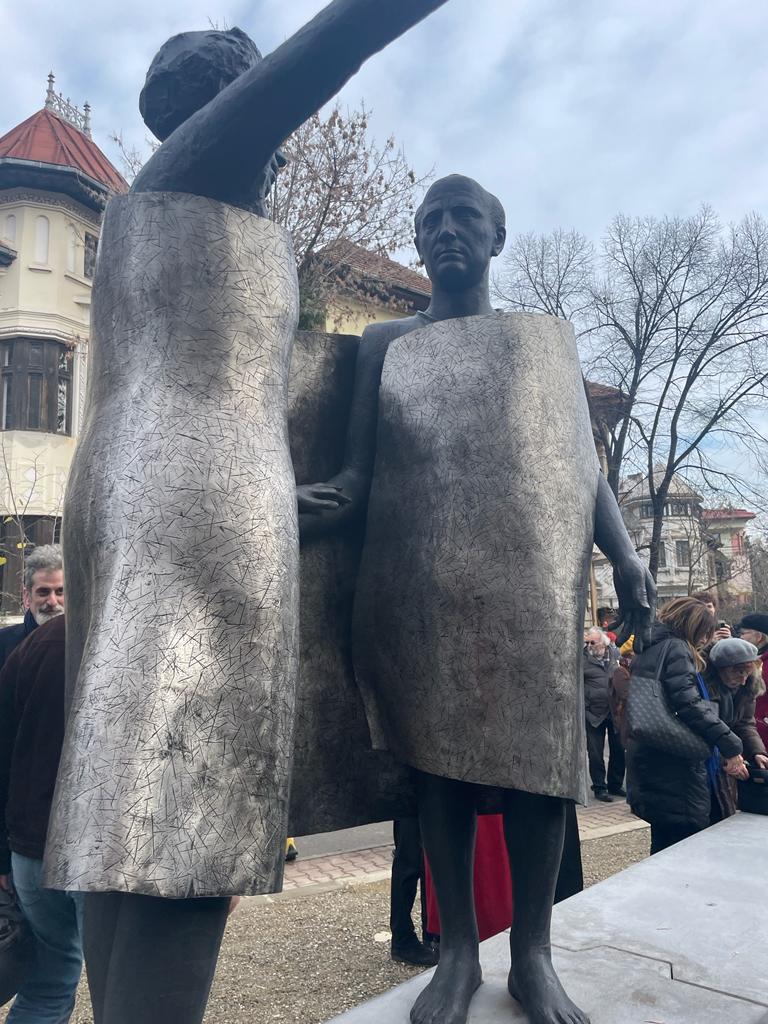 Statuia lui Virgil Ierunca. Scriitorul este perceput ca o zonă de sprijin, de calm și echilibru ce i-a fost mereu alături, în cuplu, Monicăi Lovinescu, a mai spus criticul de artă.