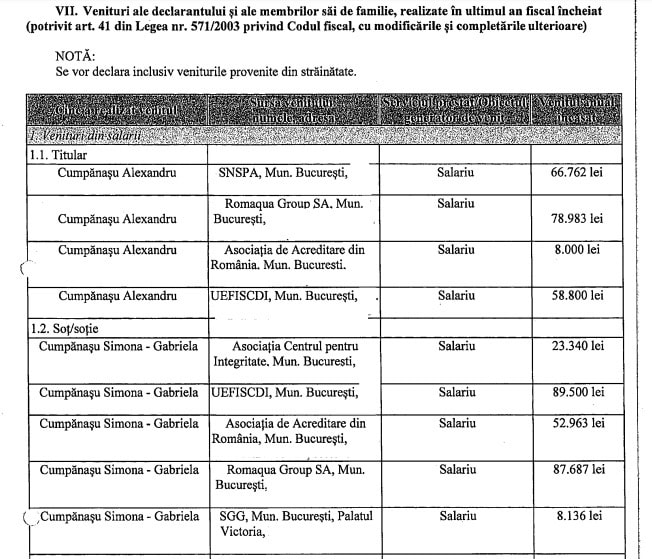 FOTO 1 Fragment din declarația de avere a lui Alexandru Cumpănașu