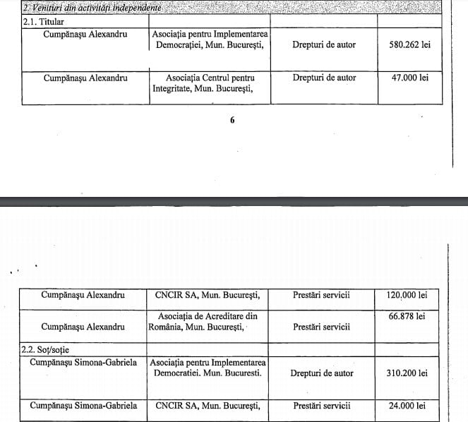 Anul trecut, Cumpănașu a încasat și peste 580.000 de lei, iar soția lui, peste 310.000 de lei, drepturi de autor din proiectele ONG-ului său, Asociația pentru Implementarea Democrației.