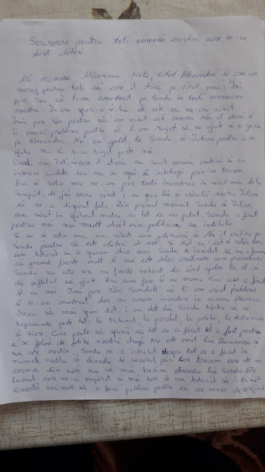 Scrisoarea a fost pusă în circulație chiar de Alexandru Cumpănașu, iar în textul acesteia toți cei care îl critică pe Cumpănașu sunt trimiși la biserică ”să își curețe răutatea și veninul” pentru că ”nu sunt oameni creștini”.